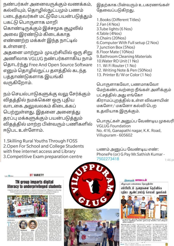 நண்பர்கள் அனைவருக்கும் வணக்கம், கல்வியும், தொழில்நுட்பமும் பணம் படைத்தவர்கள் மட்டுமே பயன்படுத்தும் பகட்டு பொருளாக மாறி கொண்டிருக்கும் இச்சமூக சூழலில் அவை இரண்டும் கிடைக்காத எண்ணற்ற மக்கள் இந்த நாட்டில் உள்ளனர்.