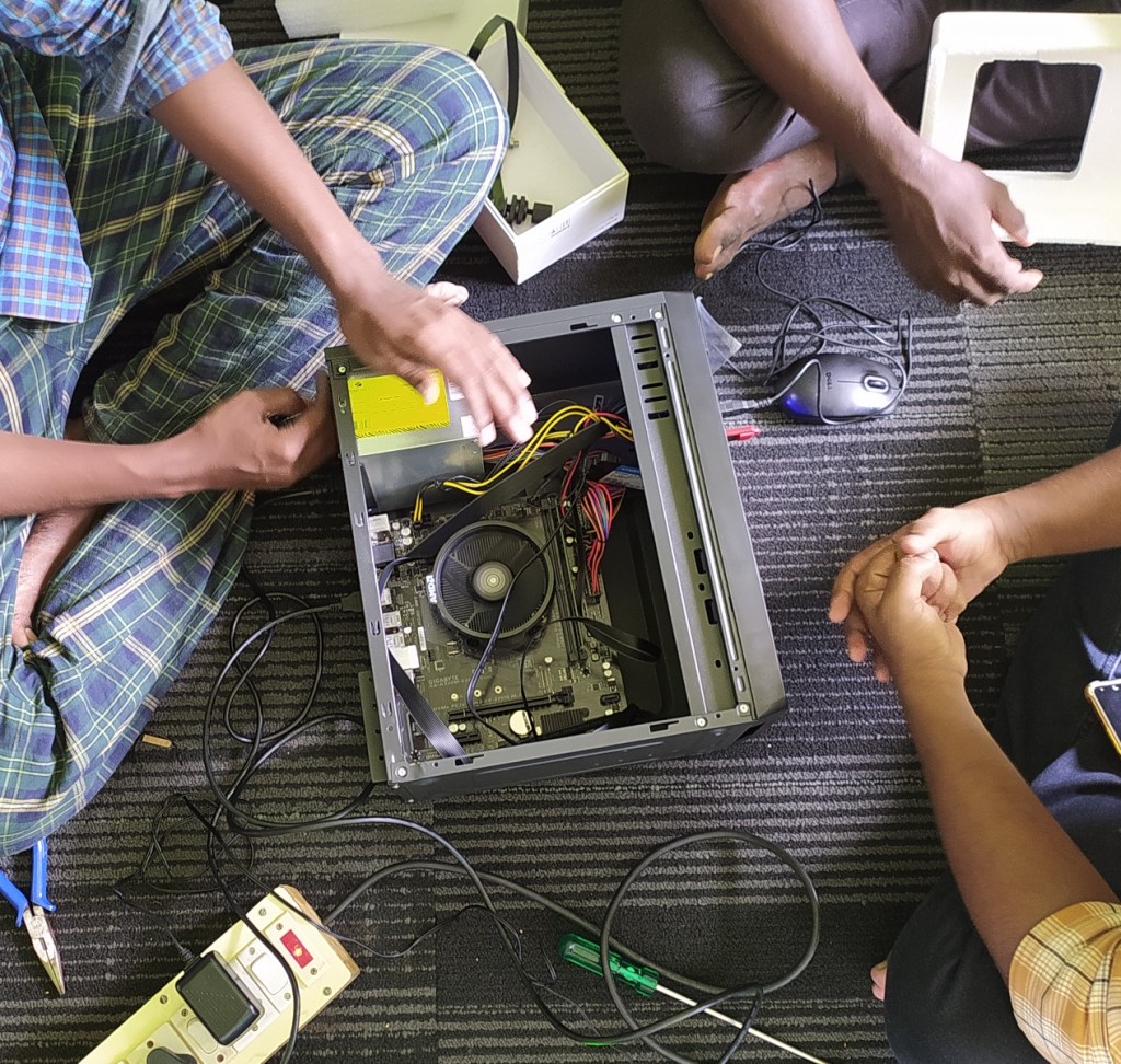 சென்னையில் இருந்து விழுப்புரத்திற்கு 24-07-2021 அன்று கணினி பாகங்கள் திலீப், லோகநாதன், ரவிசங்கர், மணிமாறன் மற்றும் கலீல் ஆகியோரின் உதவியால் கொண்டுவரப்பட்டு கணினி பாகங்களை ஒன்று சேர்த்து லதா, கார்க்கி, சதீஷ், விக்னேஷ் உதவியோடு கணினிக்கான இதர தேவைகள் நிவர்த்தி செய்யப்பட்டு, மென்பொருட்களை நிறுவி வெற்றிகரமாக கணினி மேஜையில் பொருத்தப்பட்டன.