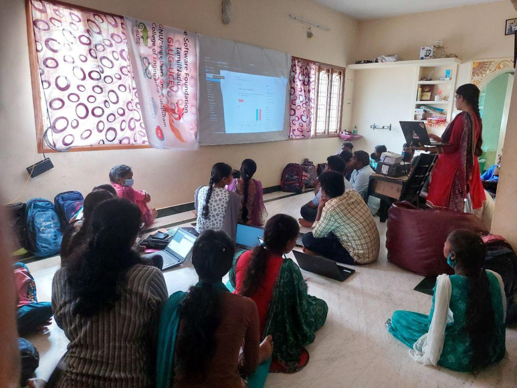 அடுத்தாக, பல்வேறு கட்டற்ற மென்பொருட்களை பற்றி லதா விளக்கினார். இன்றைய கால கட்டத்தில் கட்டற்ற மென்பொருட்கள் எந்த அளவிற்கு முக்கியம், என்னென்ன வகையான மென்பொருட்கள் உள்ளன, அதை எப்படி தரவிறக்கம் செய்வது போன்றவற்றை எடுத்து கூறினார்.