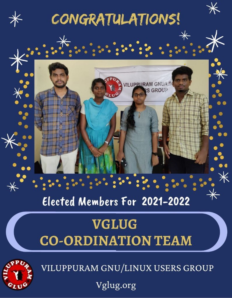 அடுத்தாக, இந்த 2021 ஆம் ஆண்டிற்கான ஒருங்கிணைப்பாளர்களை VGLUG சார்பாக கார்க்கி அவர்கள் அறிமுகம் செய்து வைத்தார். அதன்படி, திரு.மணிமாறன் ஒருங்கிணைப்பாளராகவும், துணை ஒருங்கிணைப்பாளர்களாக விஜயலட்சுமி, லோகநாதன், லதா மற்றும் விக்னேஷ் ஆகியோர் தேர்தெடுக்க பட்டனர்.