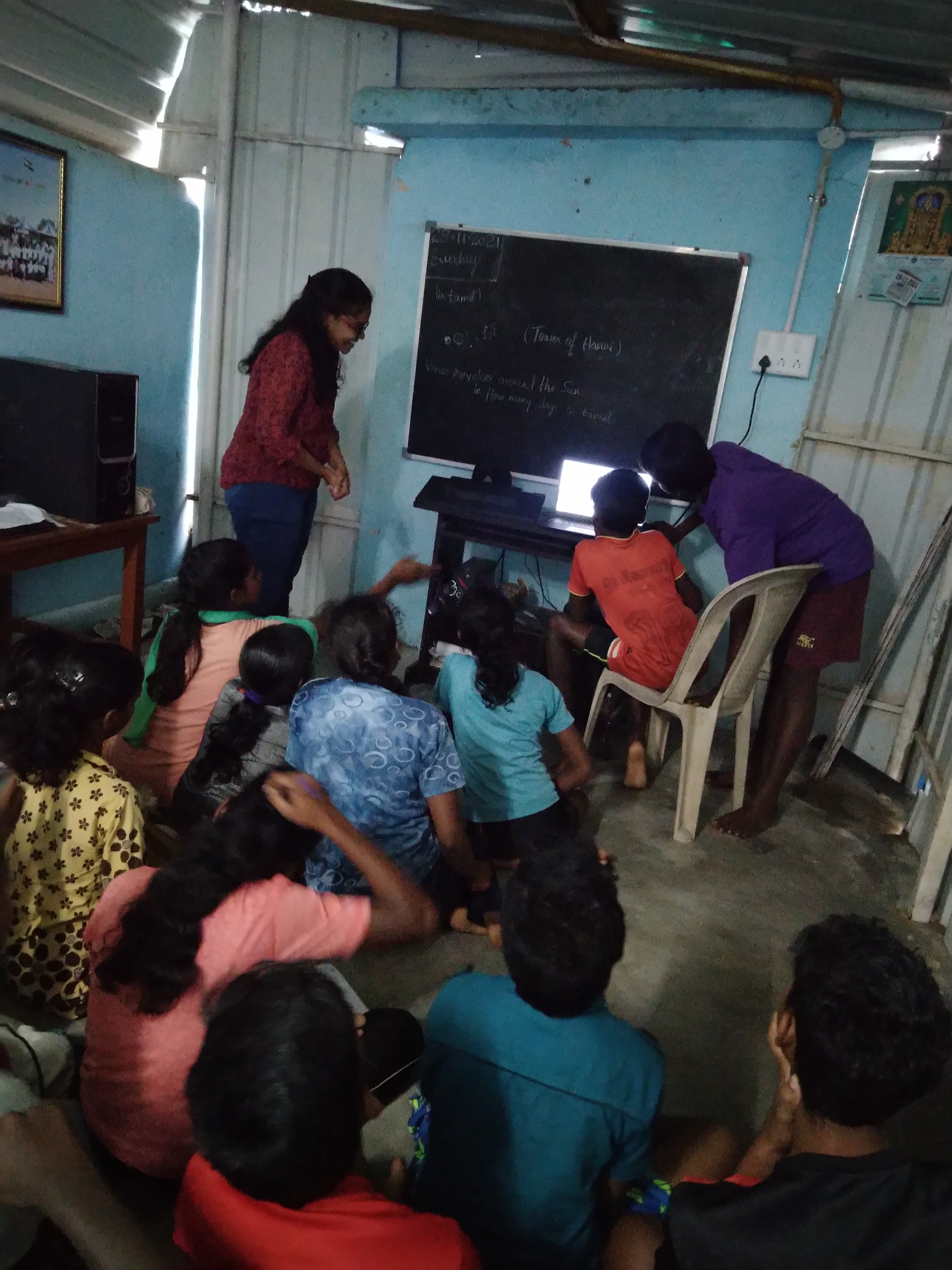 அடுத்து ஹரி பிரியா, Logical thinking தொடர்பான GCompris என்கிற கட்டற்ற மென்பொருளில் உள்ள Tower of Hanai என்னும் விளையாட்டை பற்றி விளக்கினார். இதை கொண்டு கணிதம், algorithm மற்றும் programmatic logical thinking போன்றவற்றை வளர்த்து கொள்ளலாம். இது உலகளவில் பயன்படுத்தி வரும் குழந்தைகளுக்கான எளிய மென்பொருள். மாணவர்கள் பலர் தானாகவே முன்வந்து விளையாட்டின் தீர்வைக் கண்டுப்பிடித்தனர்.மேலும் வரவிருக்கும் கூட்டங்கள் குறித்து கலந்துரையாடல் நடைப்பெற்றது. இவ்வாறாக இந்த வார வகுப்பு நிறைவுபெற்றது.