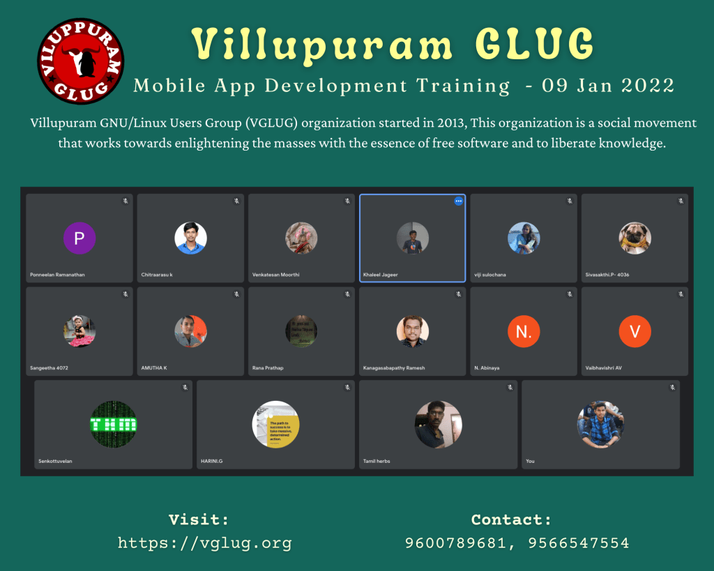 VGLUG sharing various technology knowledge to rural college students. As part of it we are doing Free Flutter Training class every week. In this flutter training we share knowledge about Flutter(Hybrid app development), Free software technologies and tools.