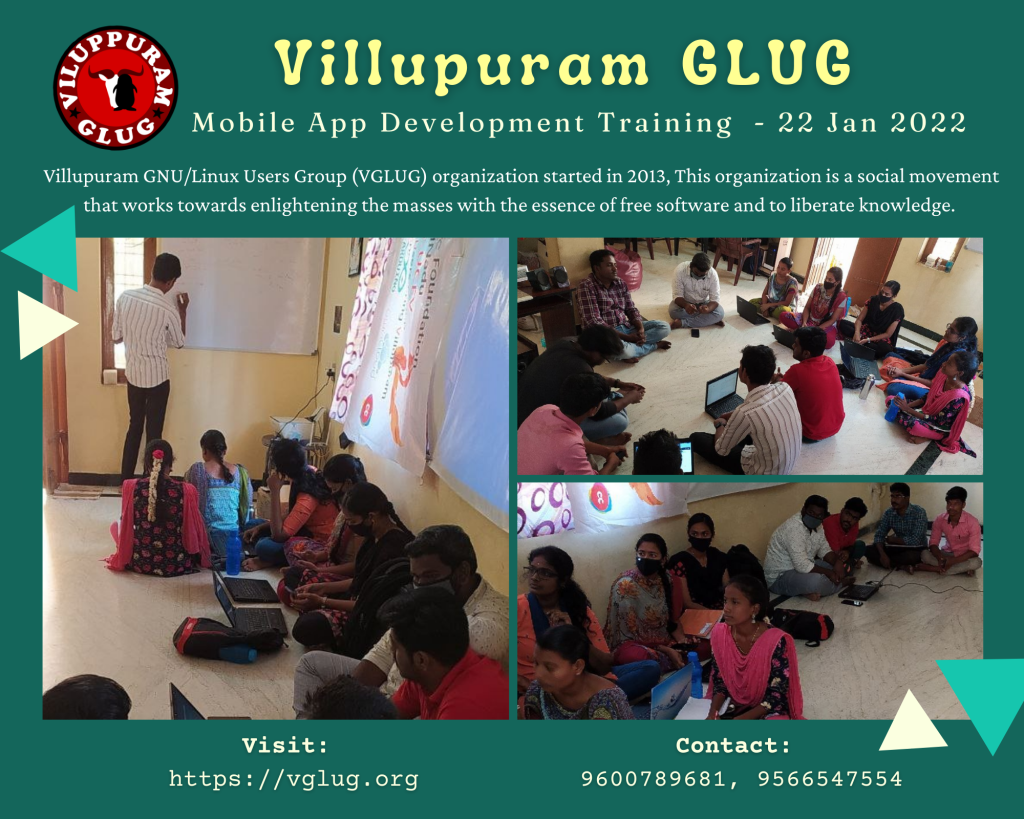 VGLUG sharing various technology knowledge to rural college students. As part of it we are doing Free Flutter Training class every week. In this flutter training we share knowledge about Flutter(Hybrid app development), Free software technologies and tools.