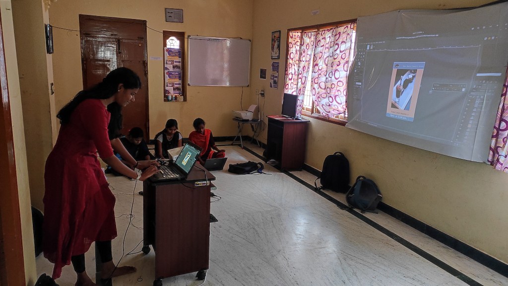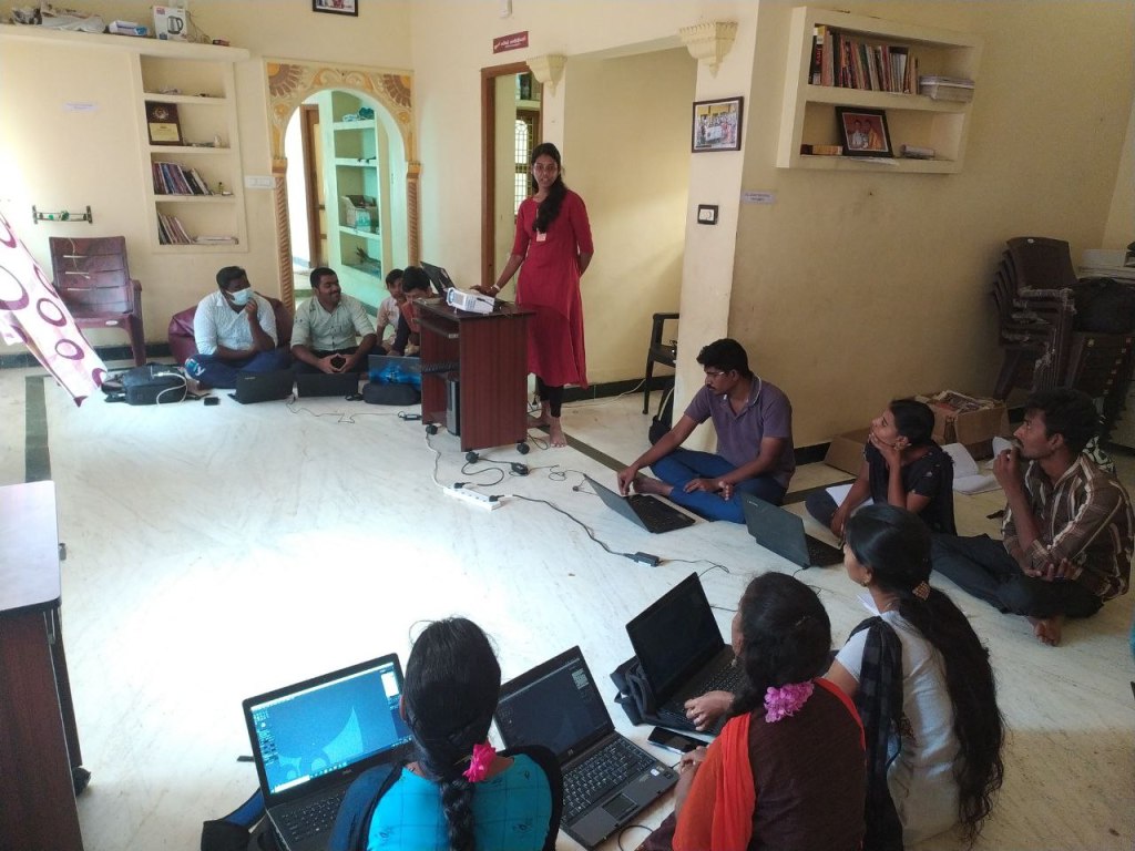- Then, Soundarya gave a demonstration about GIMP. which is an alternative for Photoshop.She explained about the tools in GIMP and Finally gave a task to all. The task is about creating a simple website mockup using GIMP. All are doing the task very well.