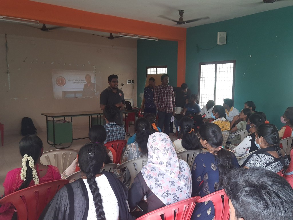 பிறகு பேசிய கார்க்கி அவர்கள் காணொளி குறித்து விளக்கிக் கூறி, எதற்கு VGLUG செயல்படுகிறது? எப்படி செயல்படுகிறது ? VGLUG இத்துணை ஆண்டுகளாக என்னென்ன செய்துள்ளது, என்னென்ன நிகழ்வுகள் நடத்தியுள்ளது என்பதை பற்றியும், இந்த இலவச பயிற்சி வகுப்பின் முக்கியத்துவத்தையும் அதன் நோக்கத்தையும் அனைத்து மாணவர்களிடமும் பகிர்ந்து கொண்டார்.