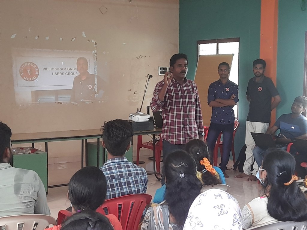 நிகழ்வின் தொடக்கமாக, தன்னார்வலர் கார்க்கி அவர்கள் நிகழ்விற்கு வருகை புரிந்த கல்லூரி மாணவர்கள் மற்றும் VGLUG தன்னார்வலர்களை வரவேற்றார்.