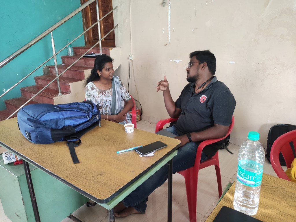 அதன் அடிபடையில் அவர்களை குழுக்களாக பிரித்து கார்க்கி,மணிமாறன் ,ஹரிபிரியா, சதிஷ் ,கீர்த்தனா மற்றும் விக்னேஷ் ஆகியோர் முன்னிலையில் VGLUG தன்னார்வலர்கள் கனிமொழி, ஹரிணி, அமுதா, சங்கீதா, சீனிவாசன், பொன்னீலன், அஜித் மற்றும் ராமமூர்த்தி உதவியோடு மாணவர்கள் தனித்தனியே அழைக்கப்பட்டு நேர்முக கலந்துரையாடல் நடத்தப்பட்டது.