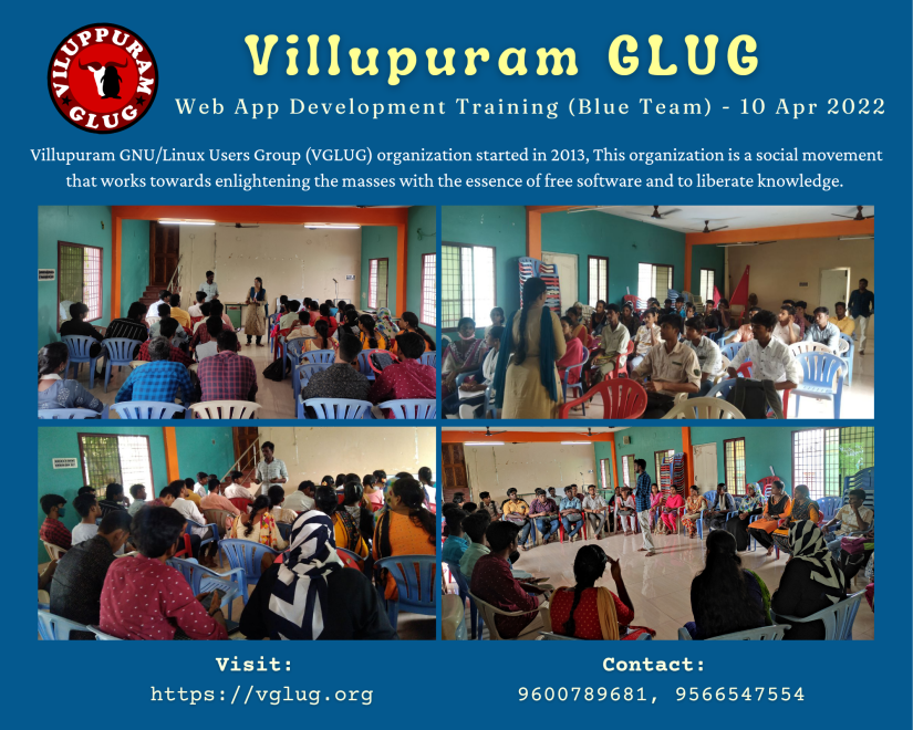 Venue : VGLUG Foundation, Bhavani Street, Alamelupuram, Villupuram – 605 602