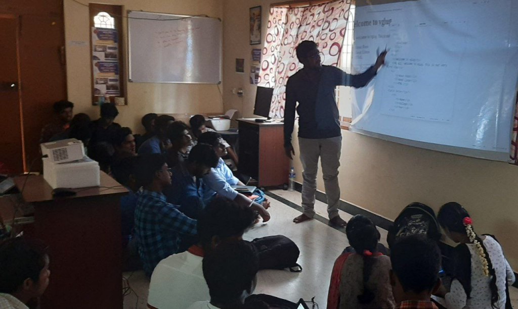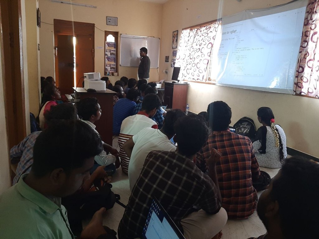 VGLUG sharing various technology knowledge to rural college students. As part of it we are doing Web Development Training class every week. The training is divided into two teams due to huge number of participants. 3rd and final year students are in the Red team and the 1st and 2nd year students are in the Blue team. In this Web Development training we share knowledge about Web Development(ReactJS and NodeJS), Free software technologies, tools and social activities.