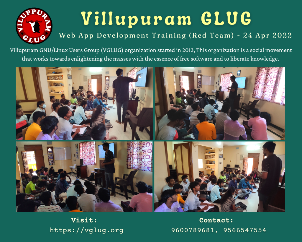 Venue : VGLUG Foundation, Bhavani Street, Alamelupuram, Villupuram – 605 602