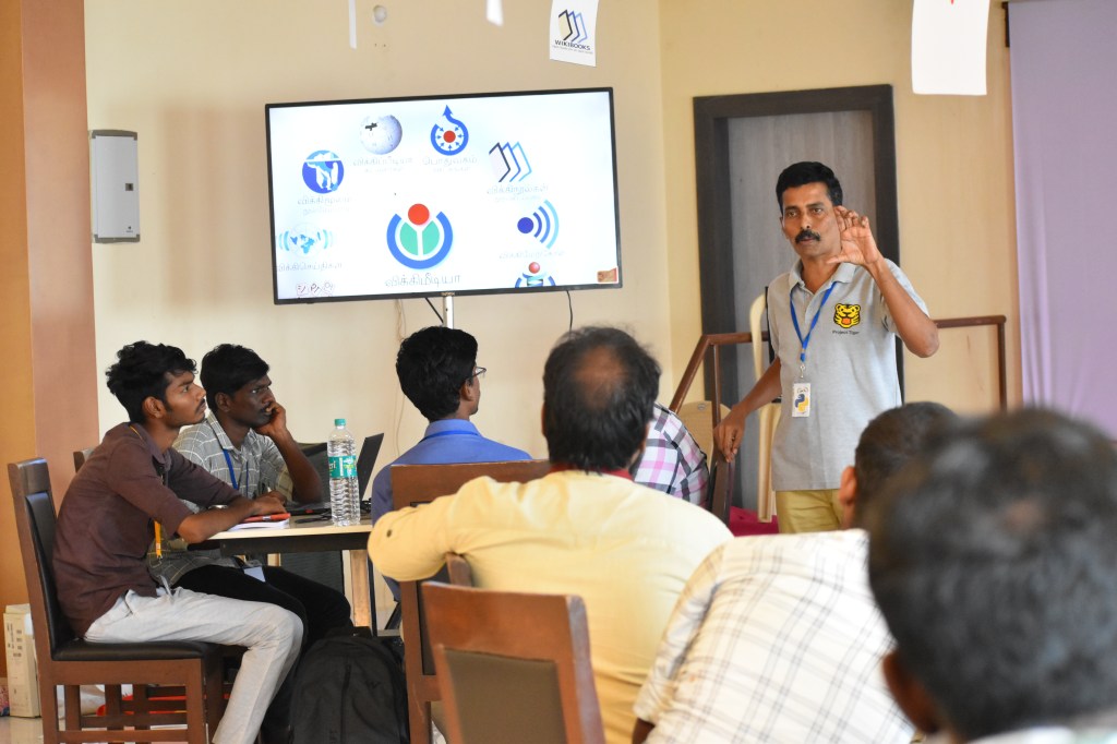 அடுத்ததாக, திரு. மணிமாறன் அவர்கள் விக்கிமீடியா ஹேக்கத்தான் எதற்காக நடக்கிறது, மீடியா விக்கி API என்றால் என்ன, அதன் நோக்கம் போன்றவற்றை விளக்கினார். பிறகு, பங்களிப்பாளர்கள் பைத்தான் மற்றும் ஜவாஸ்கிரிப்ட் தொழில்நுட்பங்களுக்கு ஏற்ப பல குழுக்களாக பிரிக்கப்பட்டனர். அதன் பின், என்னென்ன கருவிகளை என்னென்ன தொழில்நுட்பத்தில் உருவாக்கவும், மேம்படுத்தவும் போகிறோம் என்பதை கூறினார்.