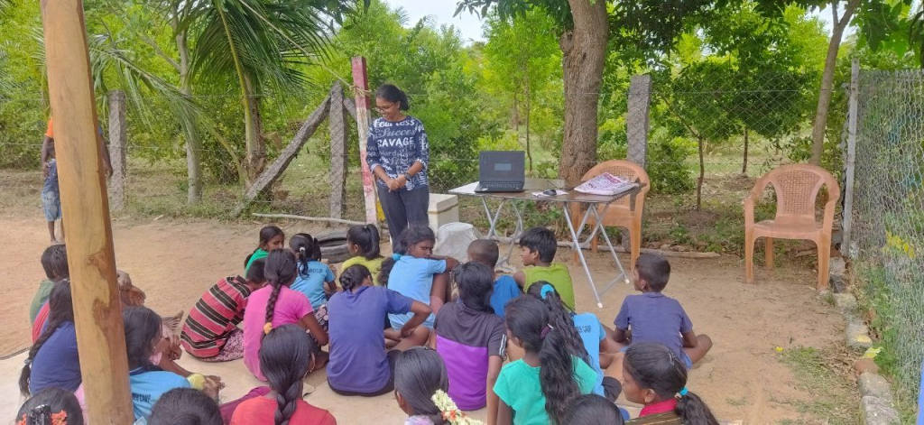 போஸ்டர் வடிவமைப்பில் பாணாம்பட்டு கிராமத்தில் ஒரு நிகழ்விற்கான அழைப்பிதழை எப்படி உருவாக்க என்பதை வடிவமைத்து காட்டினார். மாணவர்கள் மிக ஆர்வமாக எப்படியெல்லாம் டிசைன் தரலாம் என்று யோசனைகளை கொடுத்தனர்.