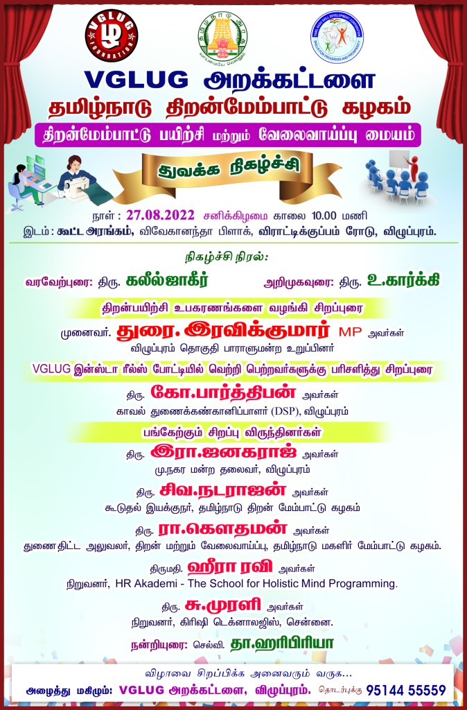 1 thought on “VGLUG Foundation & TNSDC – Skill Development Training Inauguration – Invitation”