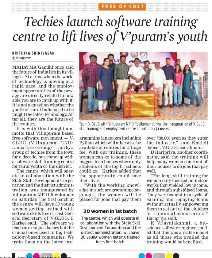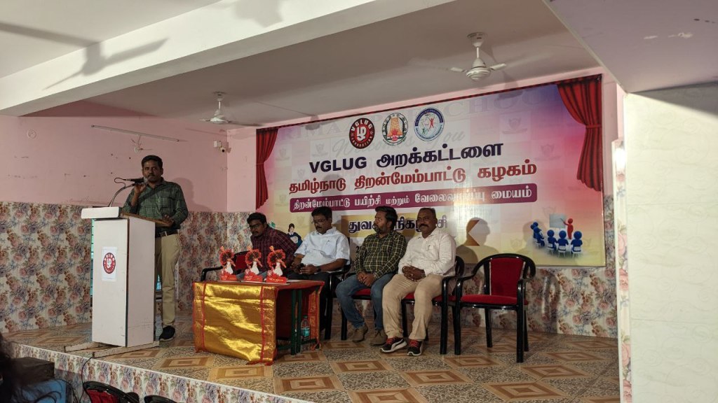VGLUG அறக்கட்டளை மற்றும் TNSDC இணைந்து திறன் மேம்பாட்டு பயிற்சி மற்றும் வேலை வாய்ப்பு திட்டத்தை நடத்த திட்டமிட்டு அதற்கான ஆயத்த பணிகளை கடந்த சில மாதங்களாக செய்ததன் பயனாக திட்டத்தின் துவக்க நிகழ்ச்சி இன்று (27 -Aug-2022) விழுப்புரத்தில் நடைபெற்றது.