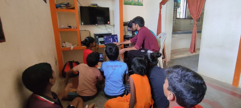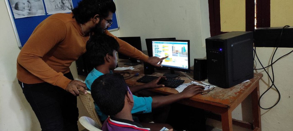 மாணவர்களைக் குழுக்களாகப் பிரித்து Scratch மென்பொருளைப் ஒரு விளையாட்டை உருவாக்கக் கூறினோம்.இதற்காக அவர்களுக்கு கணினி வழங்கப்பட்டது, குழந்தைகளும் ஆர்வமுடன் பங்கேற்றனர் .