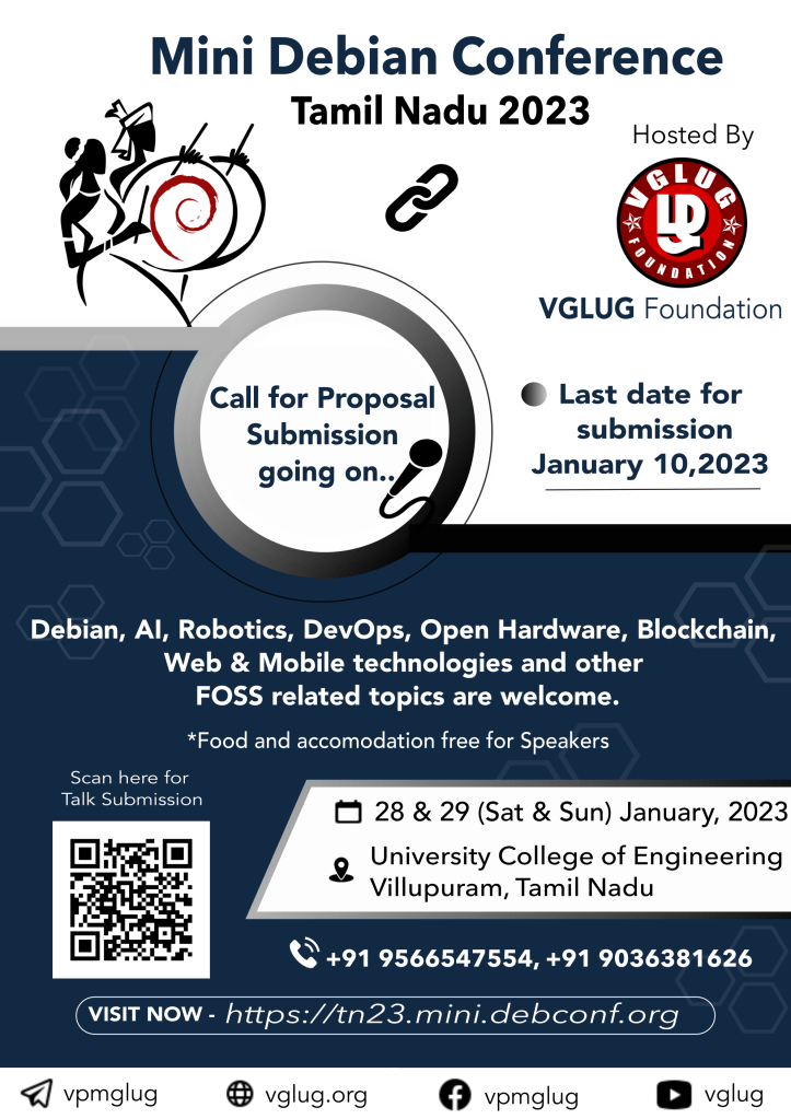 Wiki page – https://wiki.debian.org/DebianIndia/MiniDebConfTamilNadu2023/