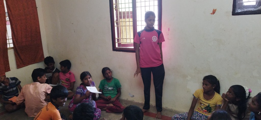 ஒரு சிறிய இடைவேளைக்கு பிறகு திரு.திலிப் மாணவர்களை மூன்று குழுக்களாக பிரித்து ஒவ்வொரு குழுவிற்கும் ஒரு புத்தகம் ஒன்றிணைக் கொடுத்து குழந்தைகளை வாசிக்கவைத்து, அந்தப் புத்தகத்தை பற்றி மாணவர்கள் விளக்கினார்கள். மாணவர்களும் ஆர்வமாக புத்தகத்தினை வாசித்தனர். இப்படியாக இந்த வார வகுப்பு இனிதே நிறைவடைந்தது