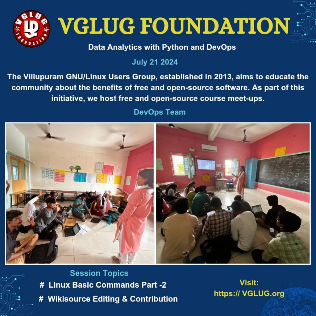 Vignesh handled this session. He explained Linux is an open source operating system (OS). An operating system is the software that directly manages a system’s hardware and resources, like CPU, memory, and storage. And also he provide a practice for the students about the linux basic commands (ls, cd, cp, rm and etc.,.)