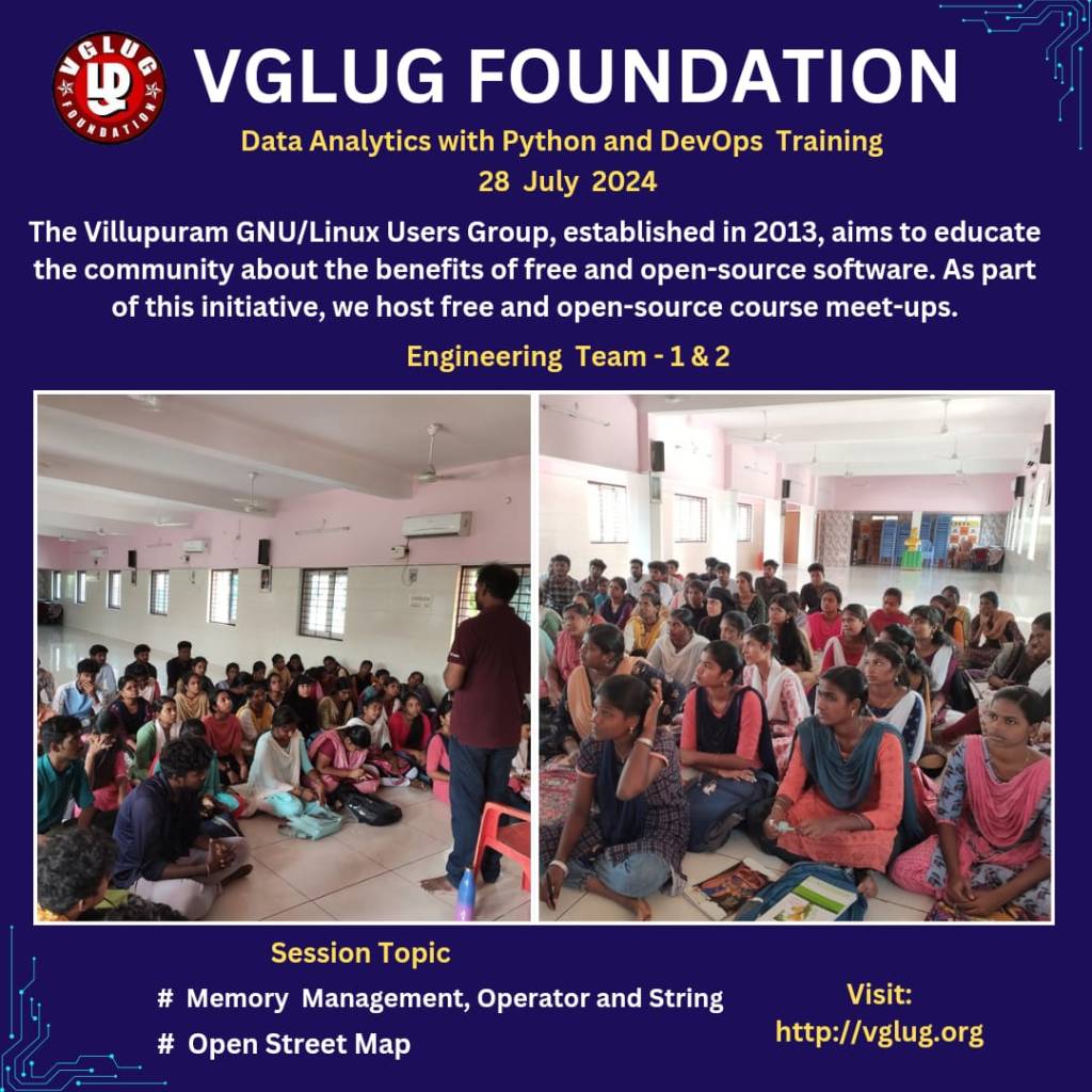 Ethiraj handled this session. He introduced the concepts of memory management and string in python. He defined memory management in Python involves a private heap containing all Python objects and data structures. strings are used for representing textual data. A string is a sequence of characters enclosed in either single quotes (”) or double quotes (“”).And he conducted a practical sessions using string concept.