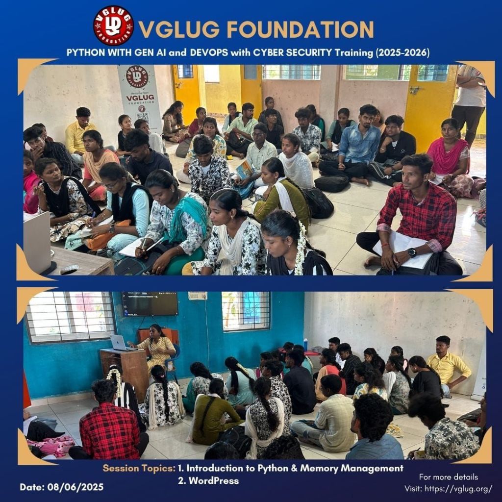 Special thanks to the VGLUG volunteers — Sathish, Vijayalakshmi, Vasanth, Dilip, Vignesh, Kanimozhi, and Loganathan — for their dedicated support and commitment to making these training sessions successful.