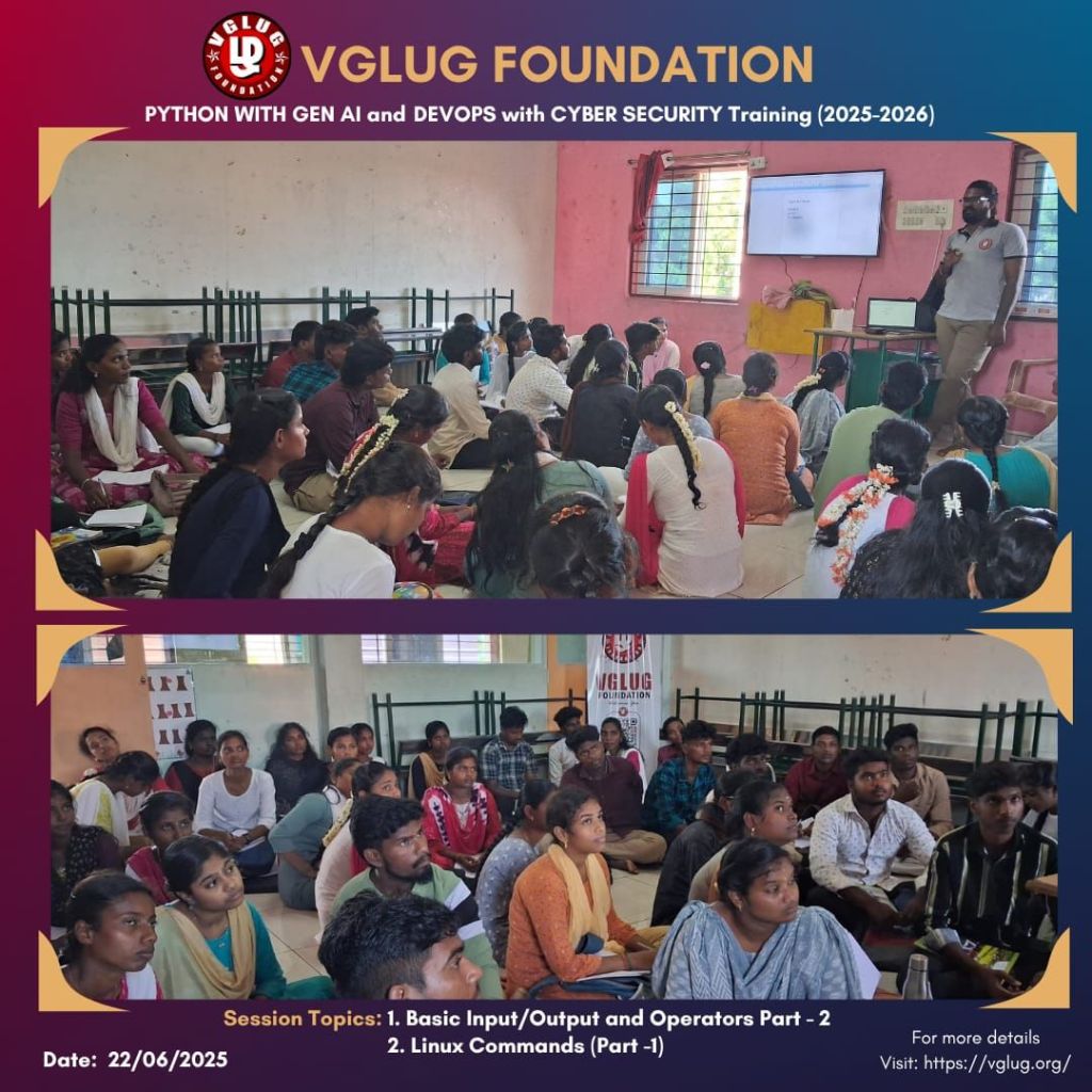 Special thanks to the VGLUG volunteers —Vasanth, Vignesh, Kanimozhi, Deepak and Kowsalya — for their dedicated support and commitment to making these training sessions successful.