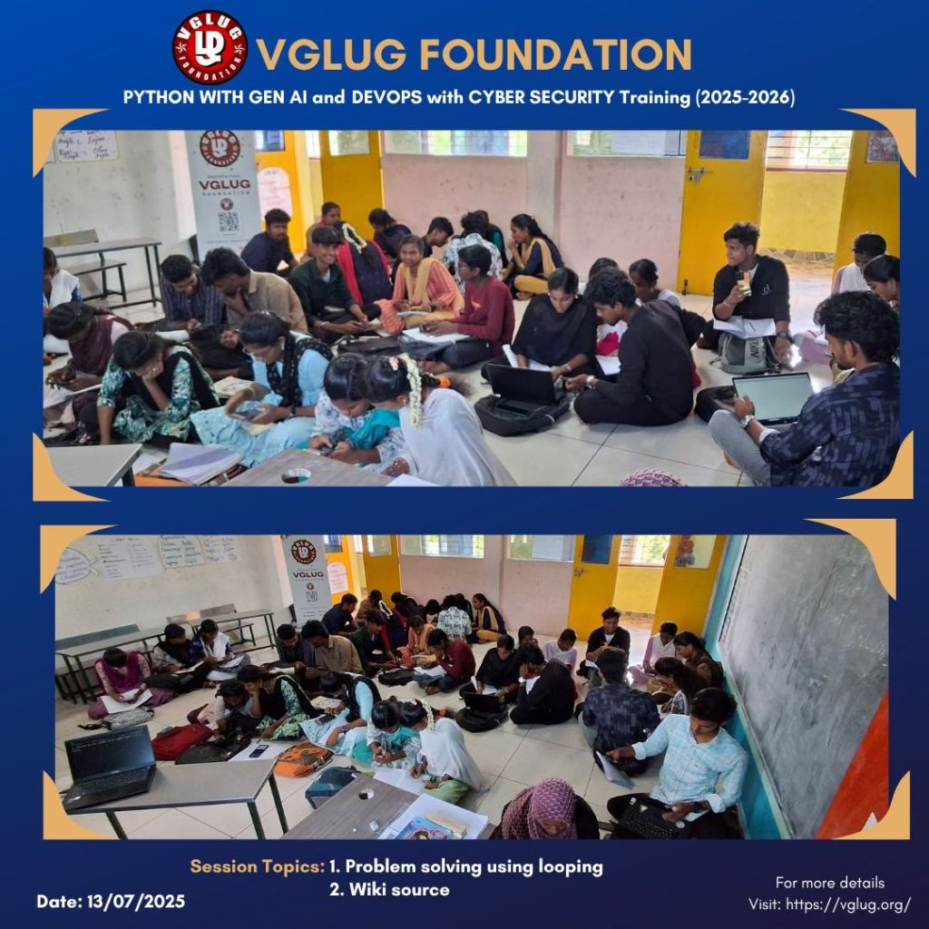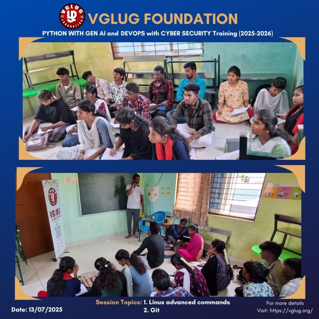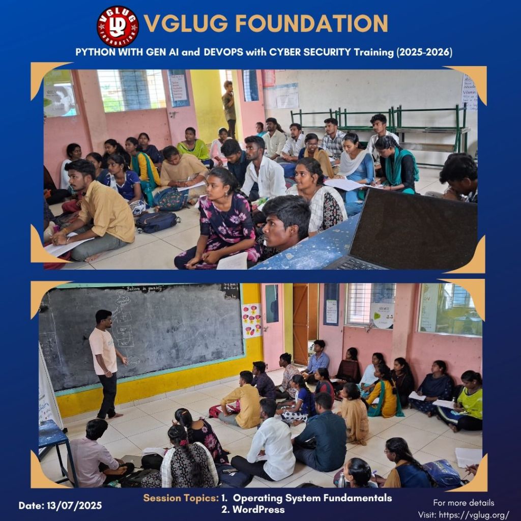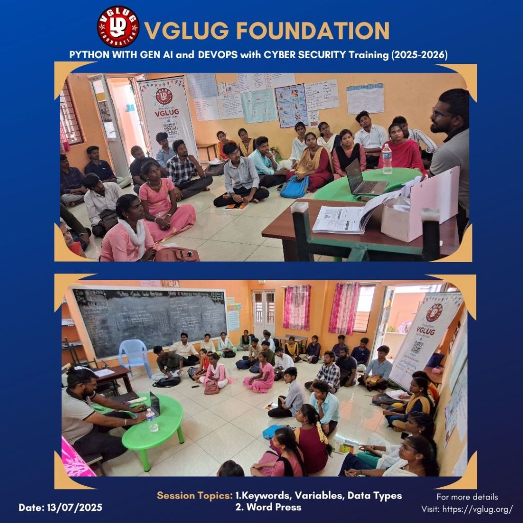 Special thanks to the VGLUG volunteers —Vasanth, Kowsalya, Dilip, Loganathan, Deepak,Vignesh ,Mathusoothanan and Kanimozhi — for their dedicated support and commitment to making these training sessions successful.