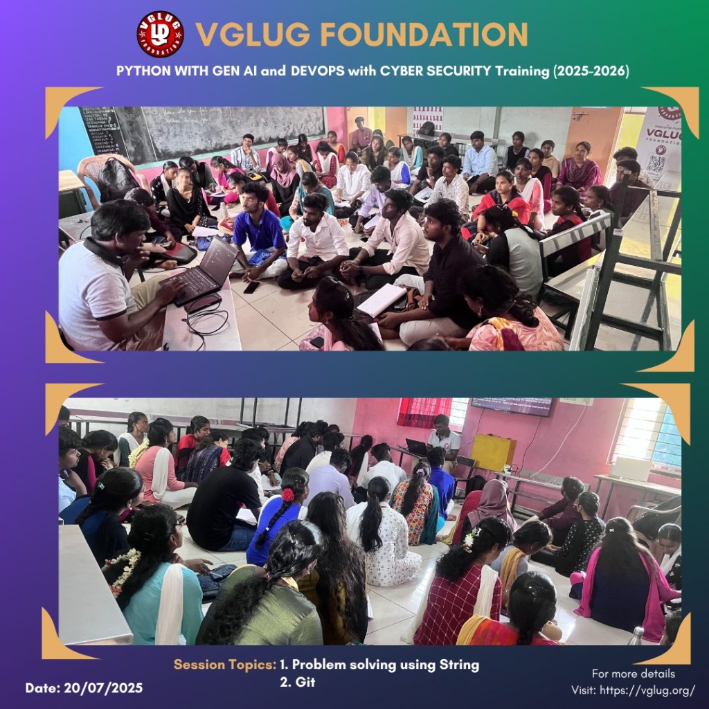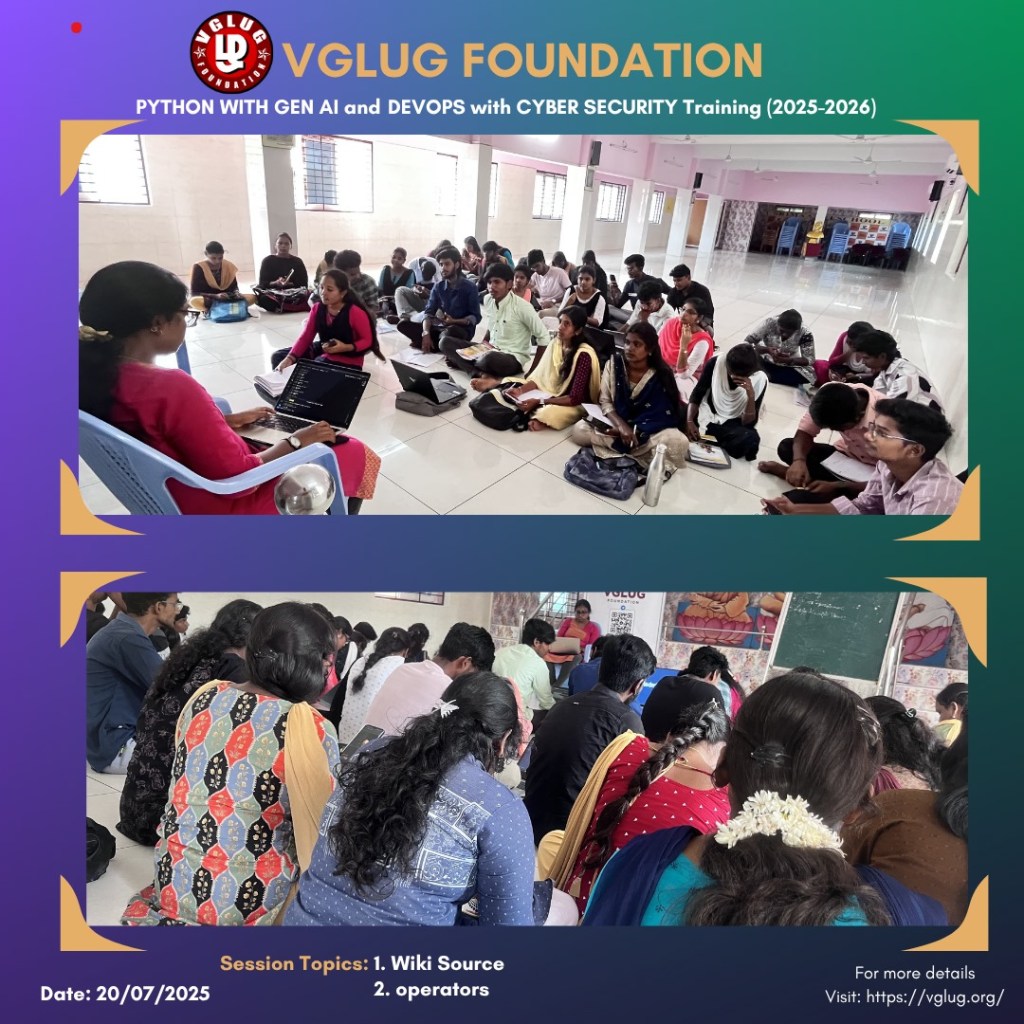 Special thanks to the VGLUG volunteers —Vasanth, Kowsalya, Dilip, Loganathan, Deepak,Vignesh ,Mathusoothanan and Vijayalakshmi — for their dedicated support and commitment to making these training sessions successful.