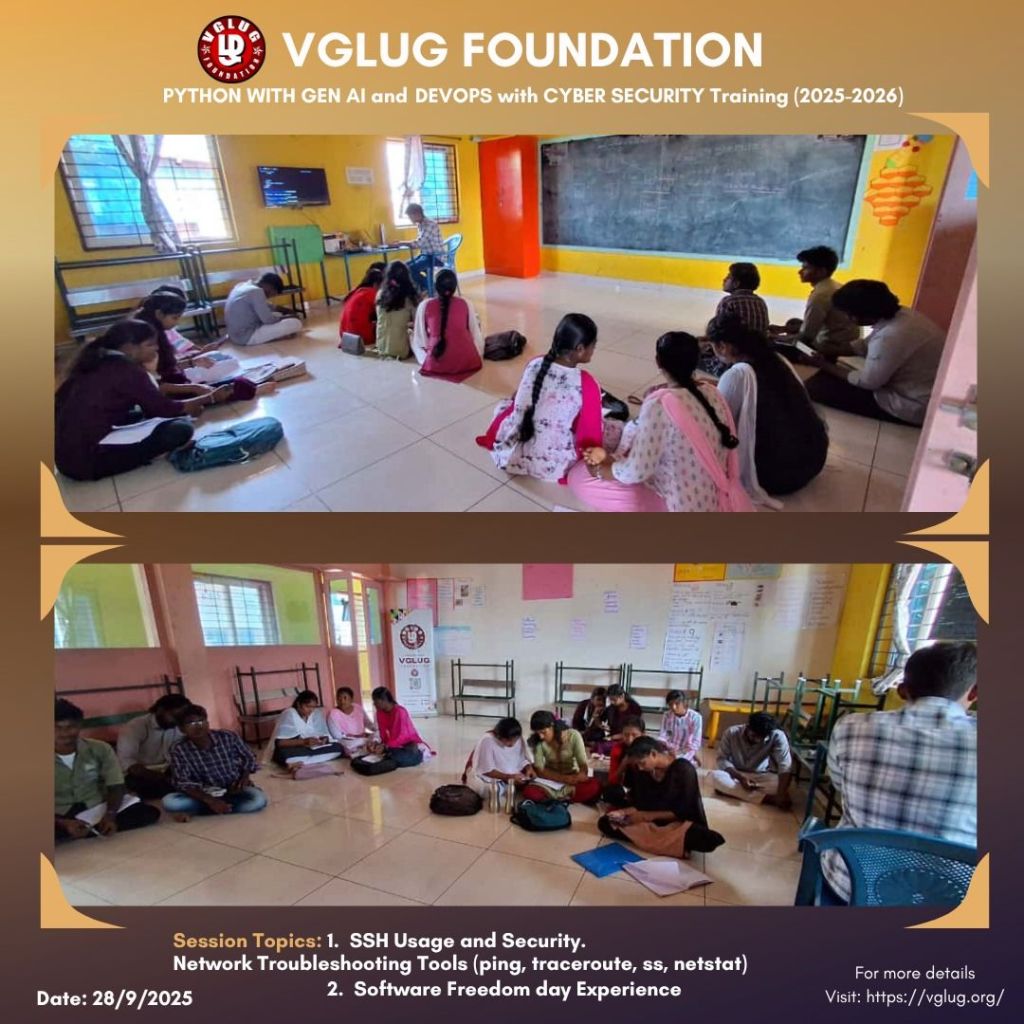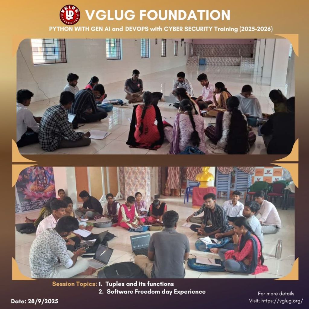 These sessions focus on practical knowledge of Python, GenAI, DevSecOps, free and open-source tools, and also include social awareness and community engagement activities.