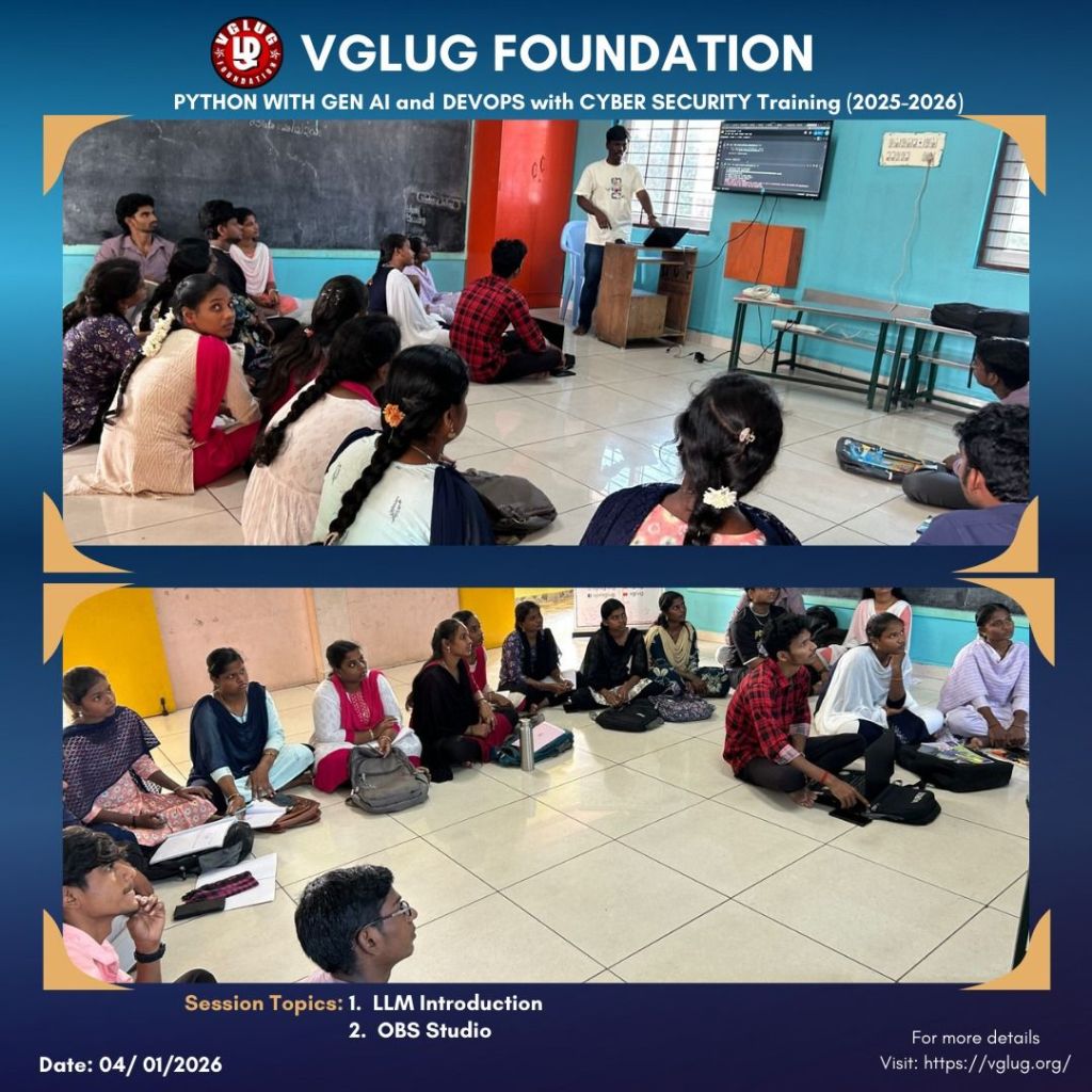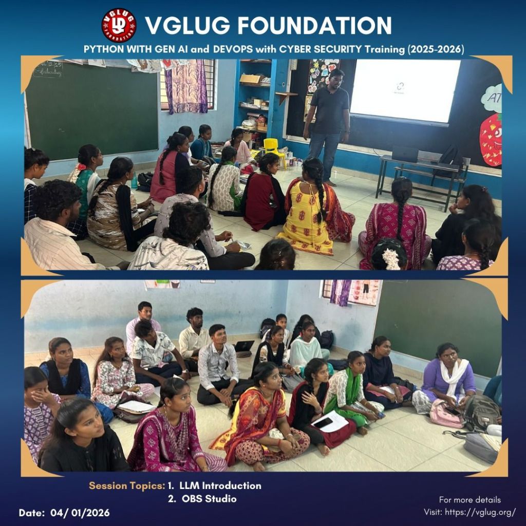 These sessions focus on practical knowledge of Python, GenAI, DevSecOps, free and open-source tools, and also include social awareness and community engagement activities.